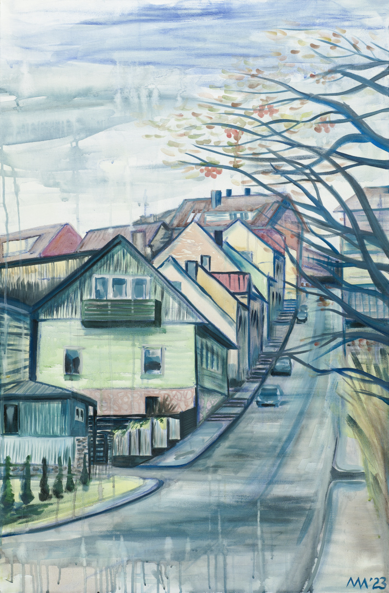 Akrüülid ja akvarellid lõuendil 80 x 120 cm